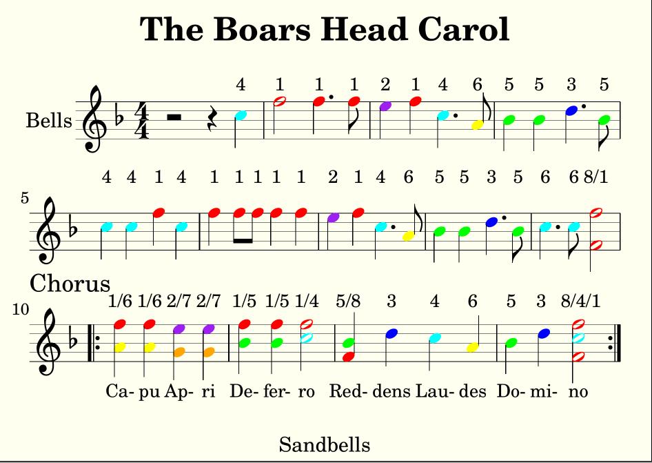 Frescobaldi & Lilypond used it to write out coloured bell chime patterns. Which it managed..
