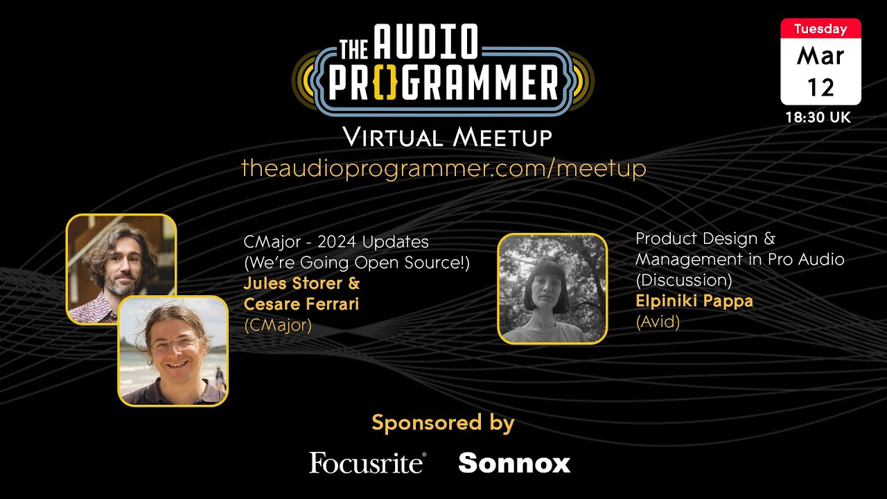 We invite you to join us this Tuesday at 6:30pm (UK) for our monthly Audio Programmer Meetup.