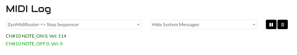 I would like to trigger a pattern from a button that I set up with “Hardware - Wiring” in the web config. It sends a midi note with the value of 0 (should be C-1) and a velocity of 114 on channel 10 (I also tried other values):