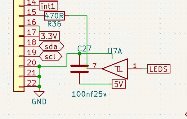 For example, when I use 5.1V coming directly from a 5A USB-PD source to supply for the LEDs (still in-specs), then the 3.0V high level of the Pi output will be at the margin. With the diode in the 5.1V line, it is perfectly fine.