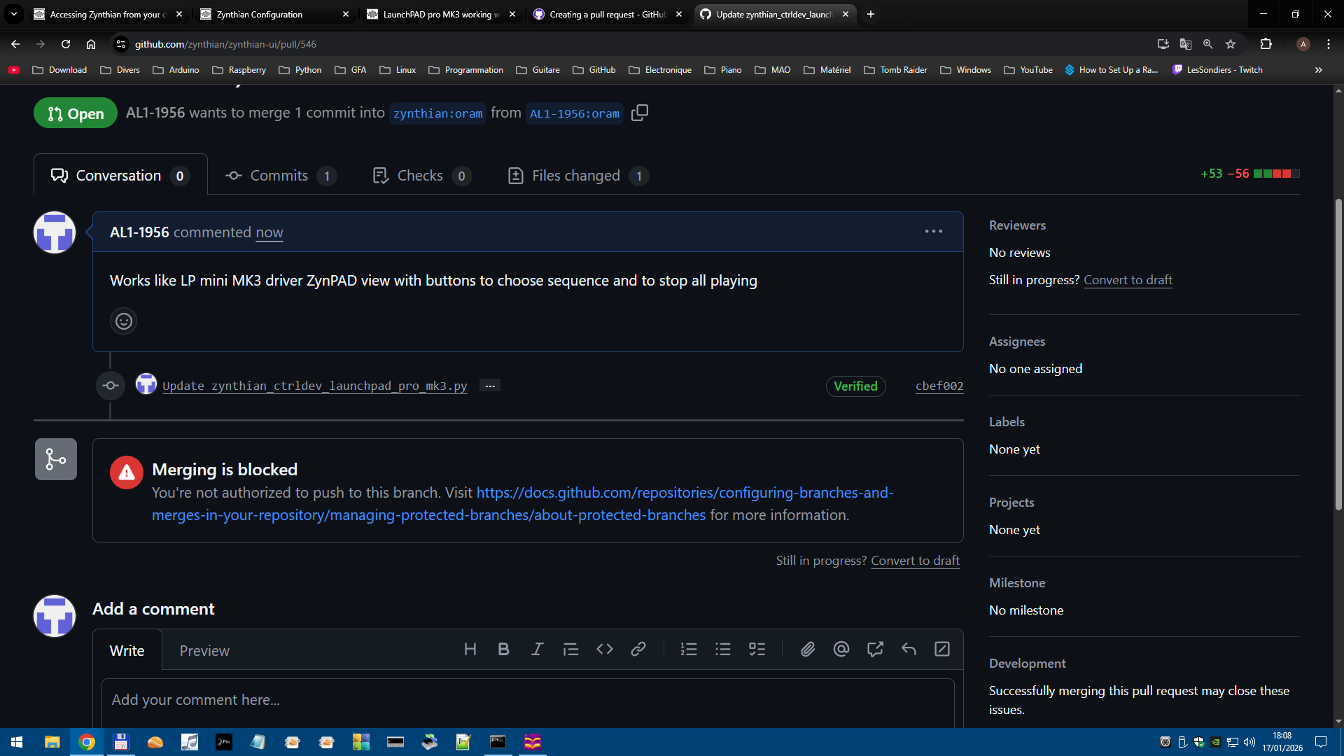 so the MIDI code is received by Zynthian but is not translated into CUIA