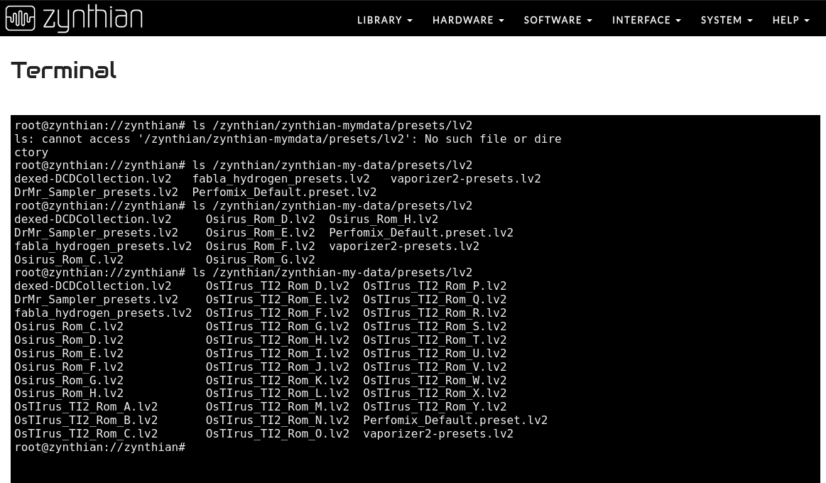 The remaining issue is with the Osirus and OsTIrus presets, which don’t show up on the Zynthian GUI, even after reinstalling for precaution the respective ROMs.