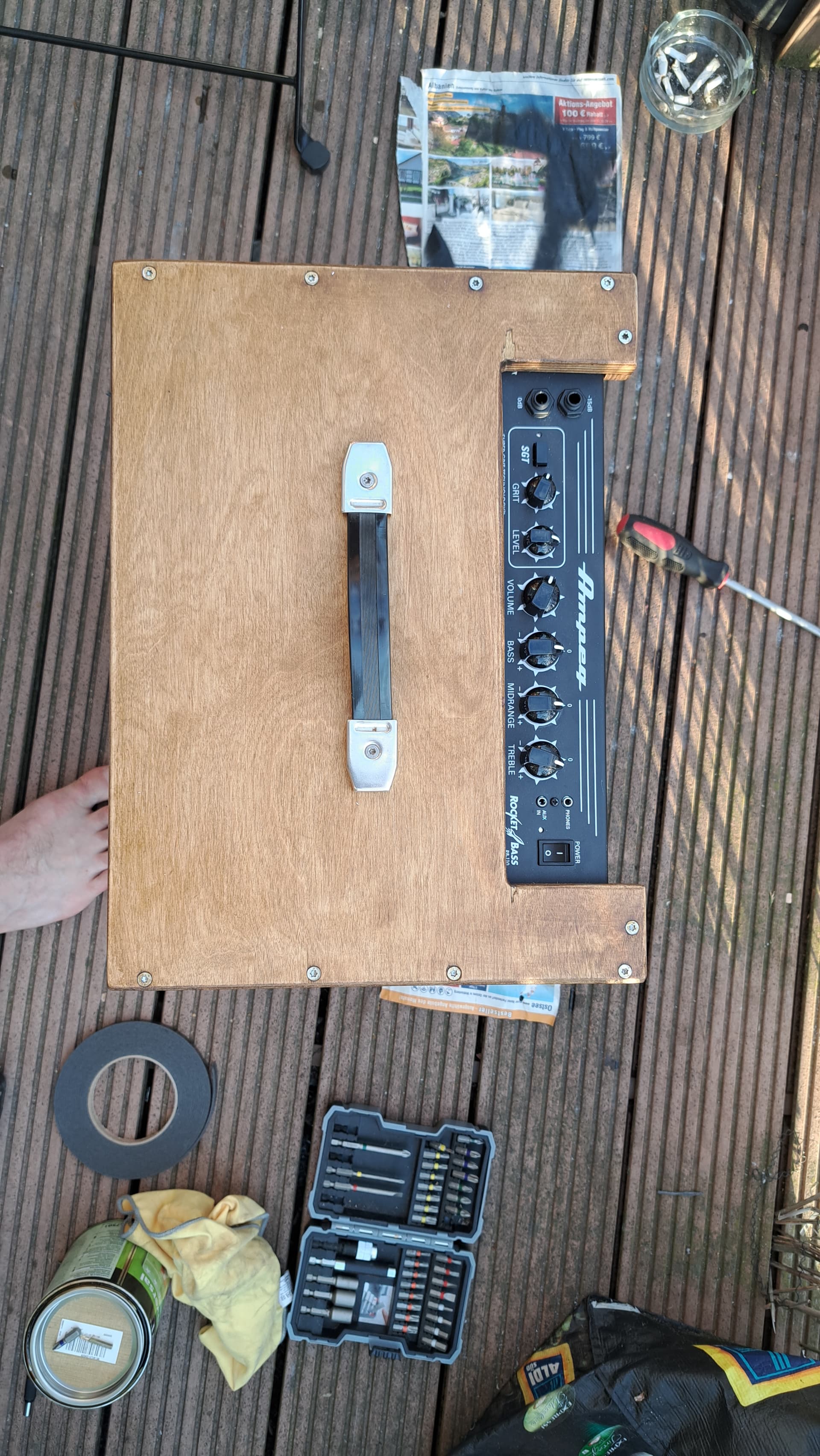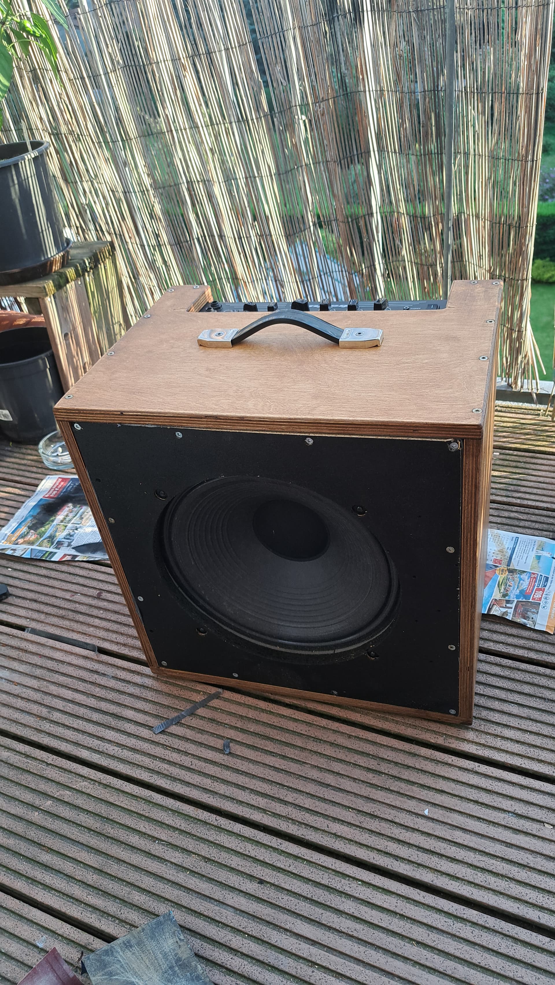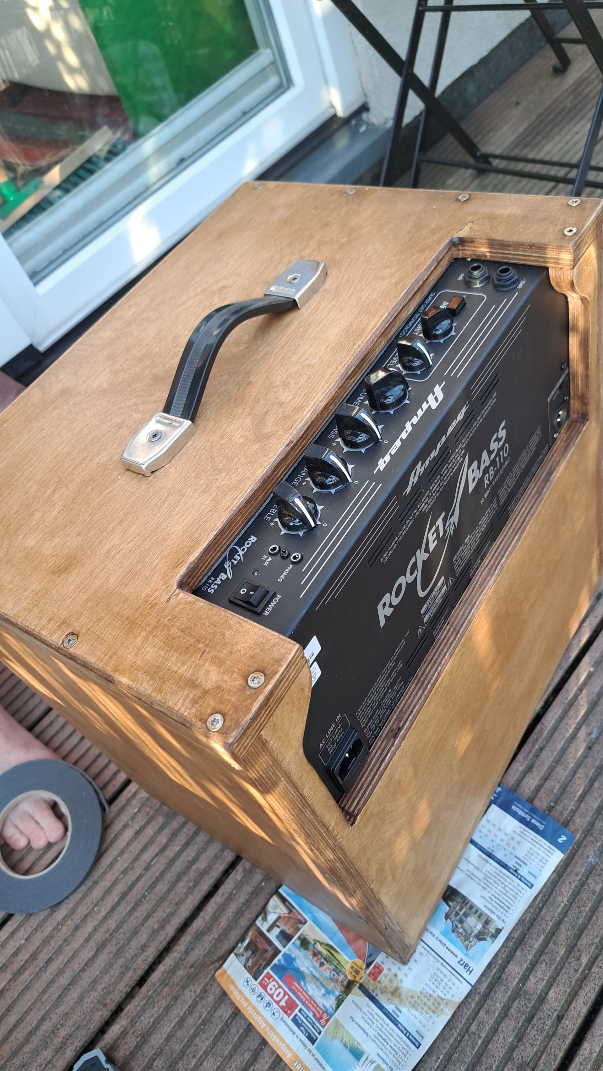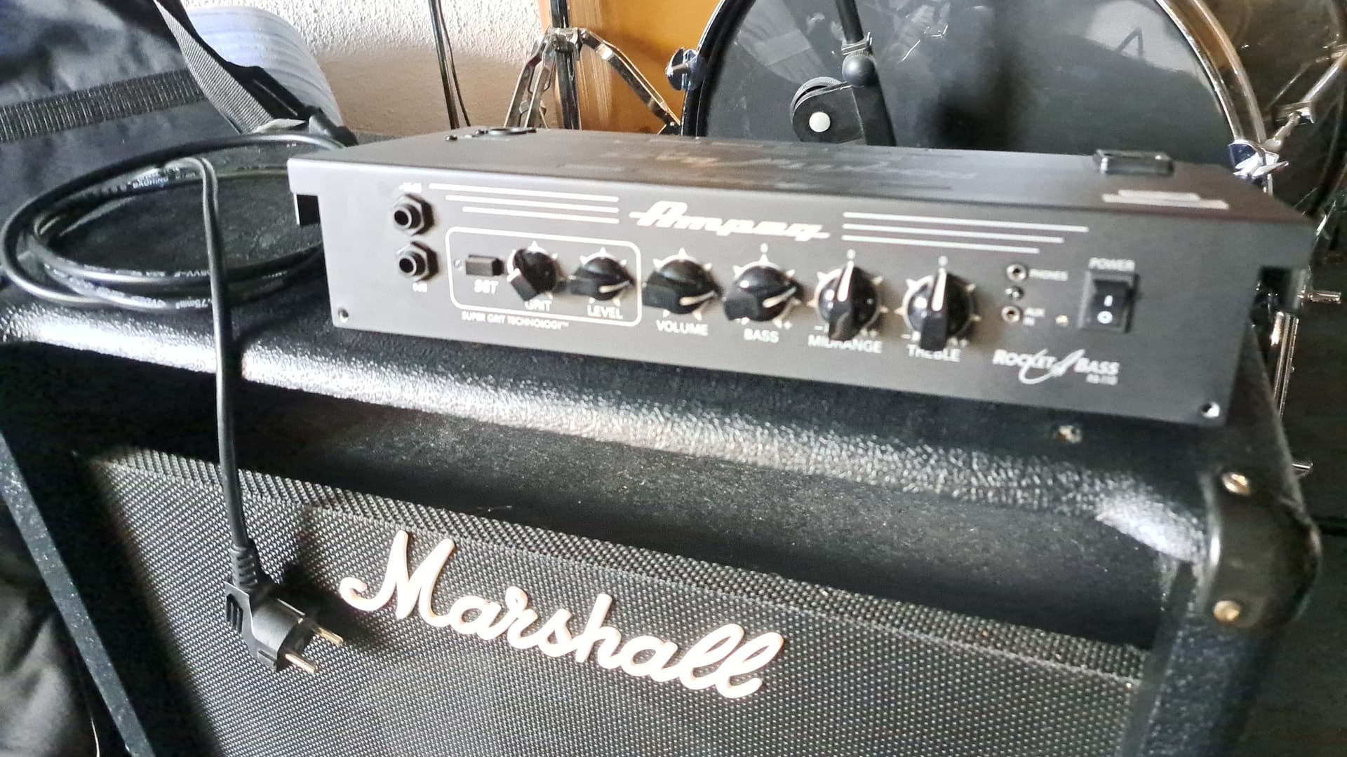 I’ll start. I bought a set of a lonesome amp unit of an Ampeg RB110 bass amplifier together with a speaker from a Marshall guitar amp for 25€ from an eBay derivate locally. I turned it into a bass amp like this: