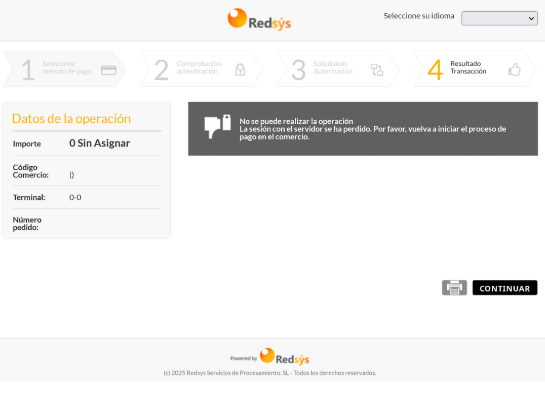 Also, the “Continuar” button on this page does nothing. Unlike the “Cancel” button on the credit card details entry page, which leads you back to the store and displays a large red banner that the payment failed. Also I don’t really speak Spanish, it switched me over from a page flow in English, but it’s not like there’s actually any useful info on this page anyway.