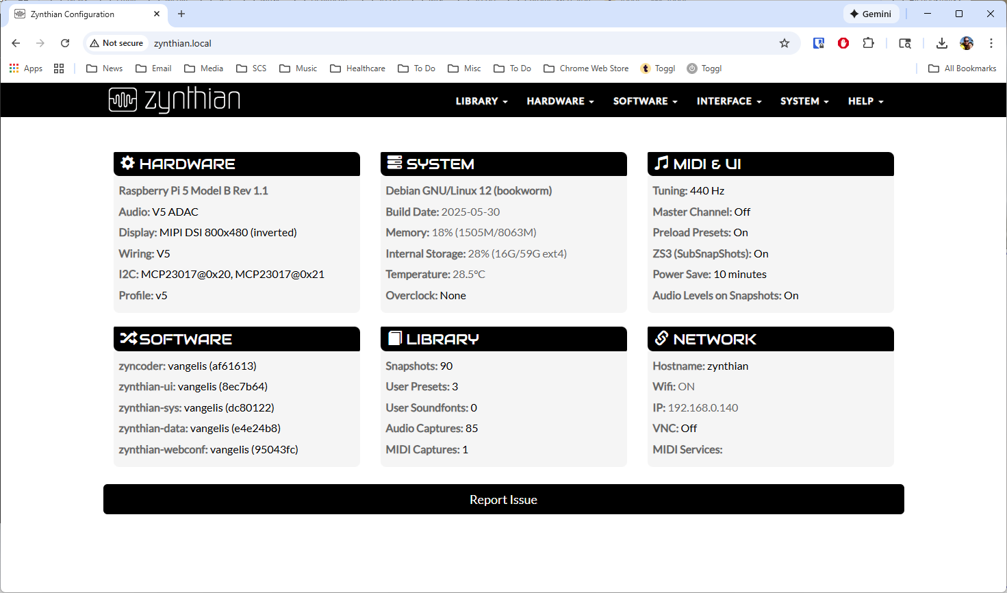 I am working off a Zynthian build I created on a new SD card on May 30, 2025. I’ve kept the system regularly updated on the Vangelis channel.