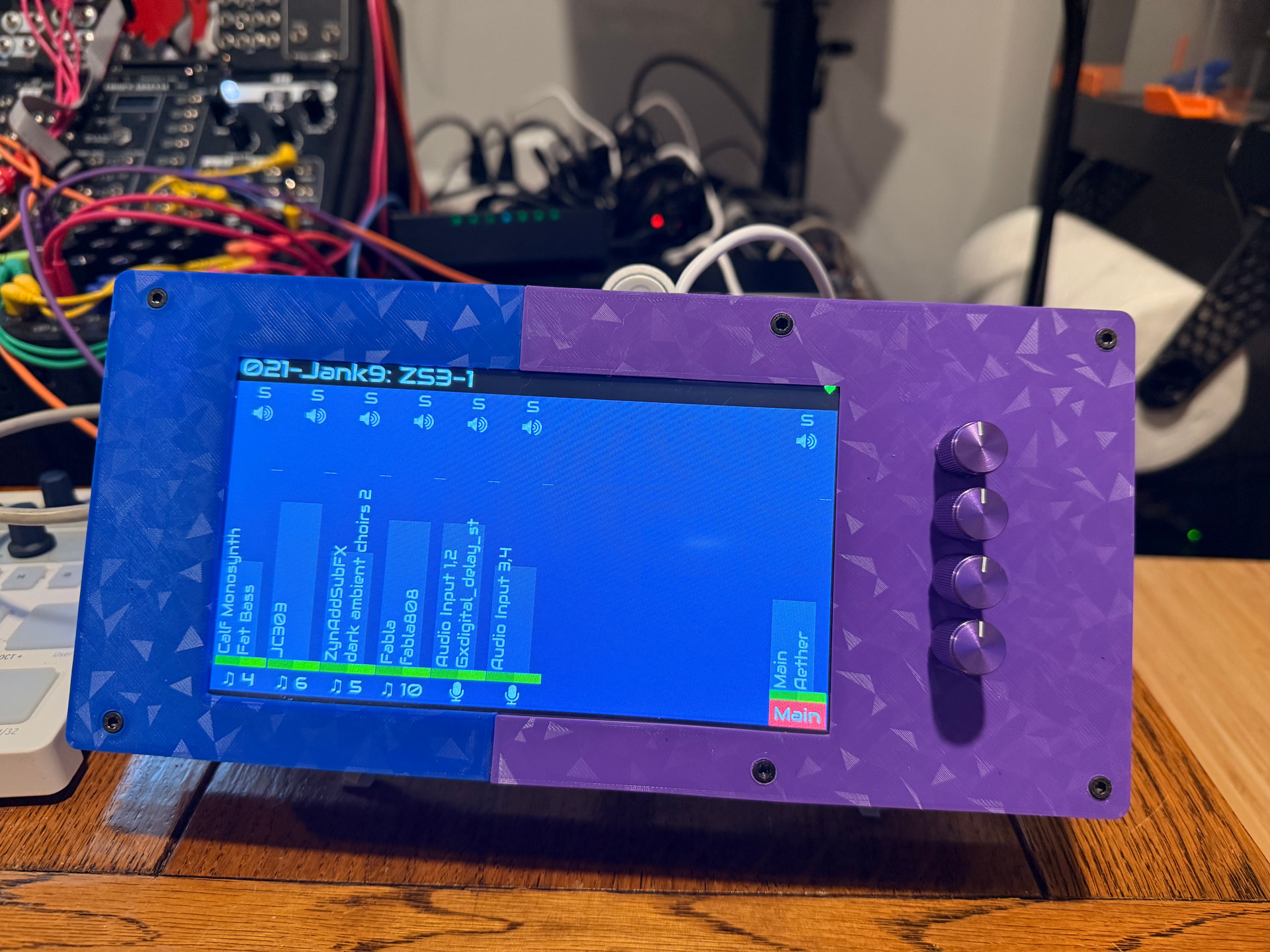 Alright I think it’s finally basically done. Custom DIY Zynthian. The potentiometer/buttons board is hand soldered perf-board with a through-hole MCP23017, Screen is an Elecro 5” DSI touchscreen. Have a Waveshare PCIe M.2 + USB3.2 hat(thus the extra usb ports). Audio interface is the Zoom LiveTrak L6 portable mixer.