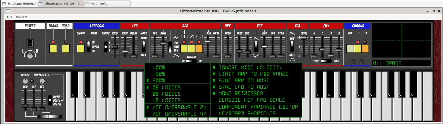 On the Zynthian side, it would be great to have the options parameters in the interface. Now they’re only available in webconf in VNC-Engines. One more thing… i noticed that the arpeggiator is not synched to BPM ![]()
