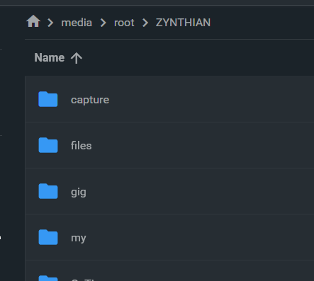The webconf File Browser works fine, the drive shows up twice, once as /media/root/ZYNTHIAN and once as my-data