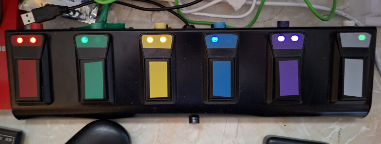 The Grey switch loops thru’ the other pages, Red page 1, Green Page 2 etc The Menu Led flashes every second to tell me it’s alive.